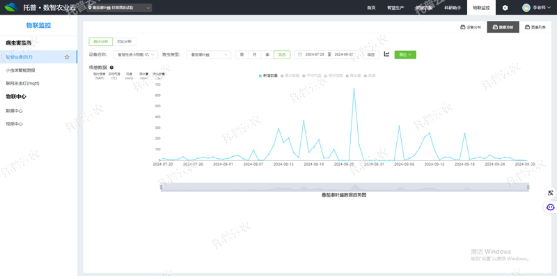 3、AI識別計數(shù),實時監(jiān)測:AI識別番茄潛葉蛾,自動計數(shù),準(zhǔn)確率高達(dá)95%以上,自動生成番茄潛葉蛾發(fā)生趨勢圖。